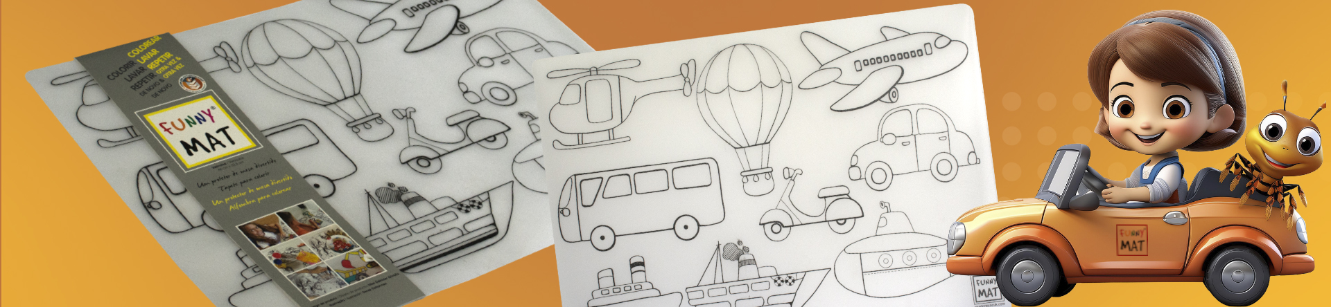Apoie as atividades de aprendizagem de seus filhos usando nossos produtos. Coloque o tapete na mesa da criança para que elas possam praticar e colorir as ilustrações. Os tapetes são desenvolvidos com conteúdo pedagógico para que a criança aprenda a colorir, estimule os músculos das mãos e as habilidades motoras.